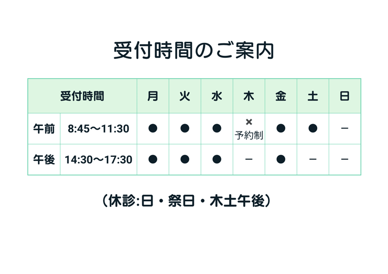※混雑状況によって、新規の患者さんの受付が11時までとなる場合があります。